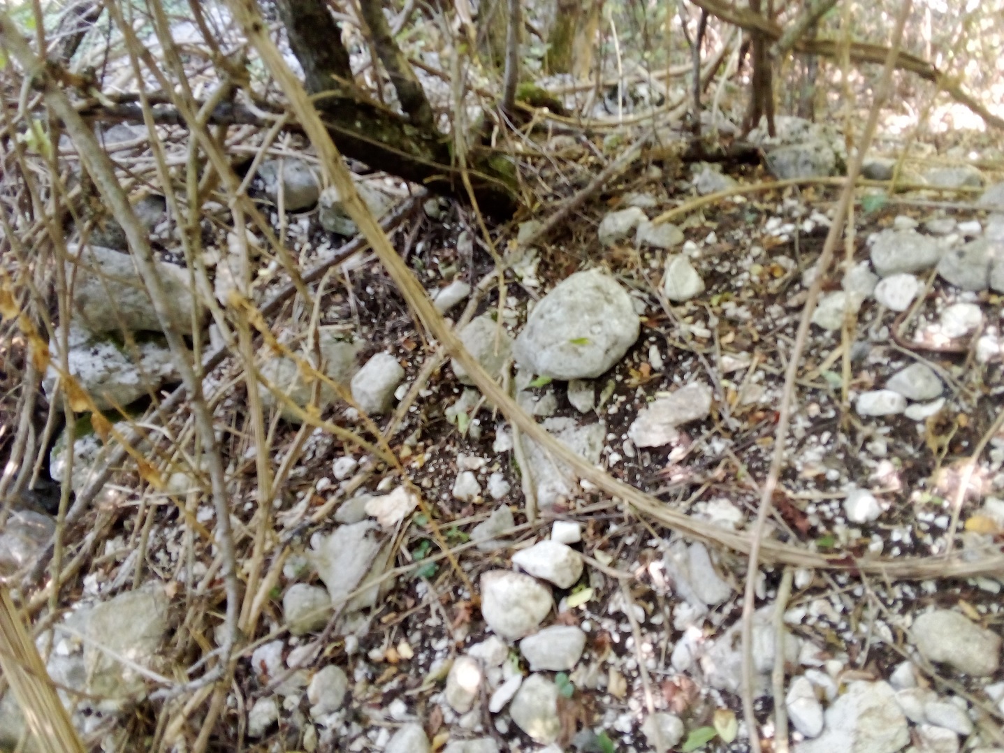 Dolje: areal periplaninskih padina sjeveroistočno od Širokog Brijega s pronađenim čitavim, danas u pravu i neprobojnu planinsku prašumu totalno zaraslim, kamenim megalitskim zaselcima, gdje između onih kamenih suhozidnih kuća iskorištavanih ili građenih u periodu novije povijesti (17-20. st.), postoje čitavi nizovi još izvornijih i suhozidano monumentalnijih pravih kiklopskih kuća vrlo širokih zidina, s djelomičnom ili gotovo potpunom ukopanošću u stjenoviti okolni teren, te s pronalascima mjestimično i brojnije grube keramike prapovijesnih osobitosti unutar kulturnog sloja u dodiru sa zidovima izvorno najstarijih kamenih suhozidnih zdanja te kuća